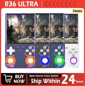 Consola R36 ULTRA heredera directa de la R36s pero con pantalla más grande y cuadrada ( 1:1), incluye tarjeta de 64 GB.