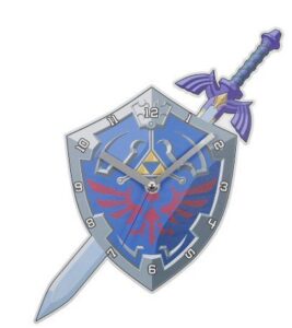 Reloj de pared con forma de escudo y espada azul y plateado Zelda