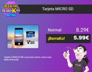 hace 3 semanas Tarjeta MICRO SD Tarjeta LEXAR 64 GB a muy buen precio, marca muy fiable #microSD ❌ NORMAL: 8.29 € ✅ BERRAKO: 5.99 € Comprar